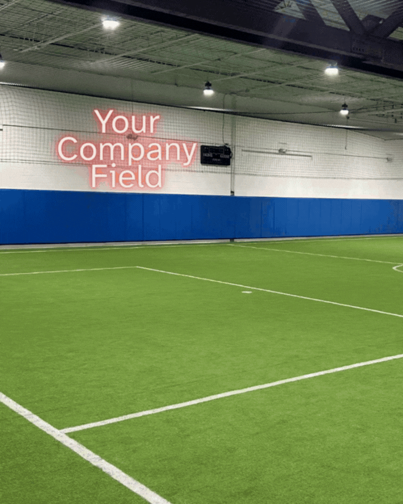 This sponsorship includes having your company’s name shown in neon lights in our lounge. Your company will also be featured on our sponsor page, and the lounge will be renamed in promotional material and on soccerplant.com as the “Your Company” lounge.